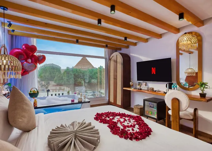Located merely 0.9 km from Memphis, the 4-star Pyramids Vision Hotel Cairo is just 7 minutes' walk from the Valley Temple of Khafre. This Cairo hotel provides guests with Wi-Fi throughout the property.